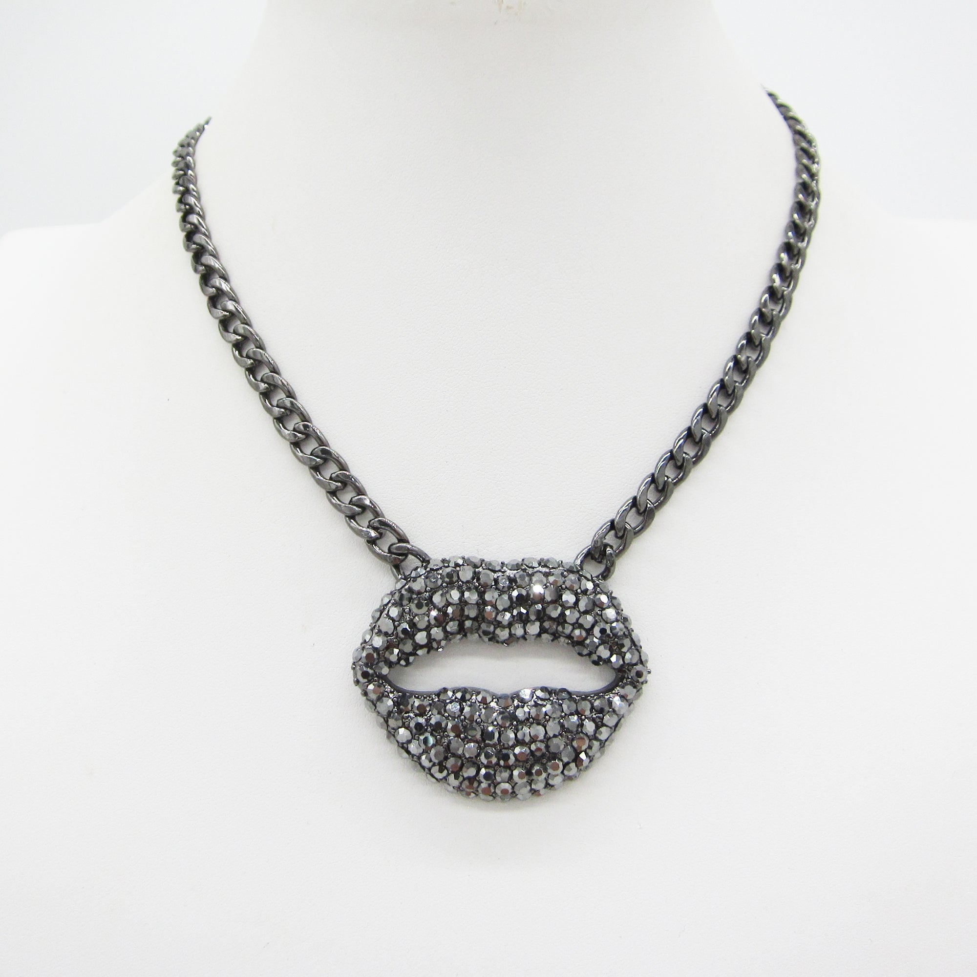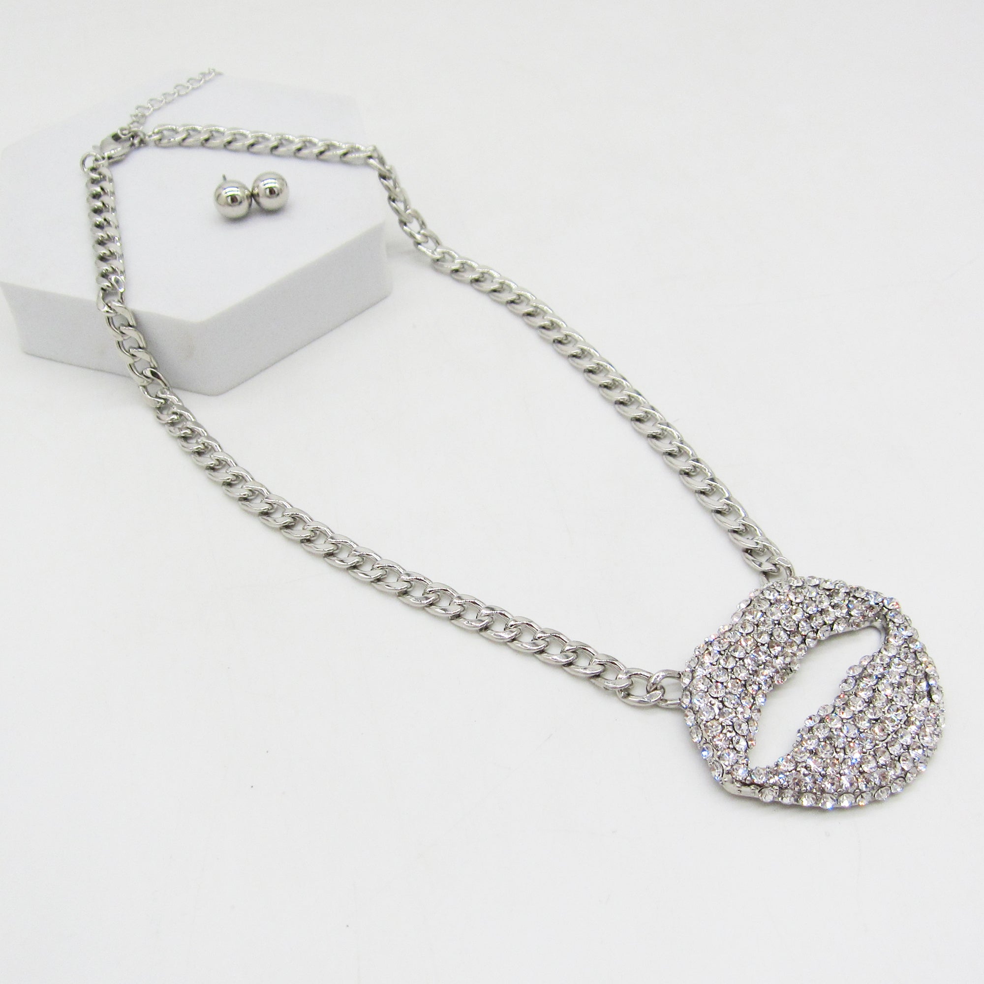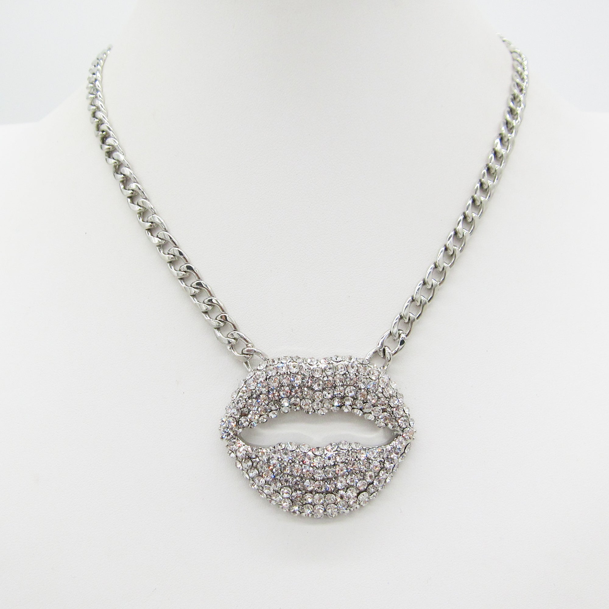 Add a bold sparkle to your look with this Rhinestone Lip Pendant Necklace!