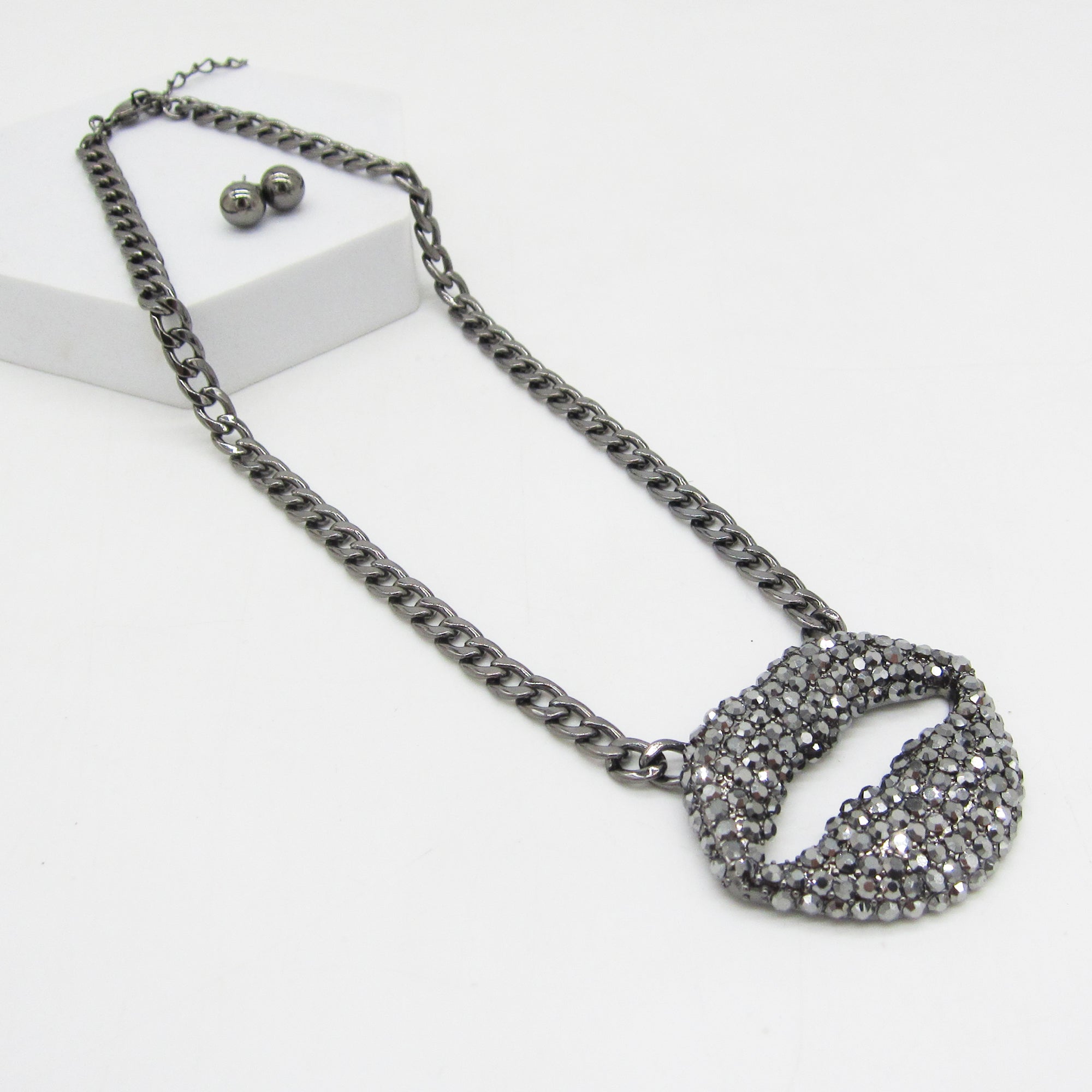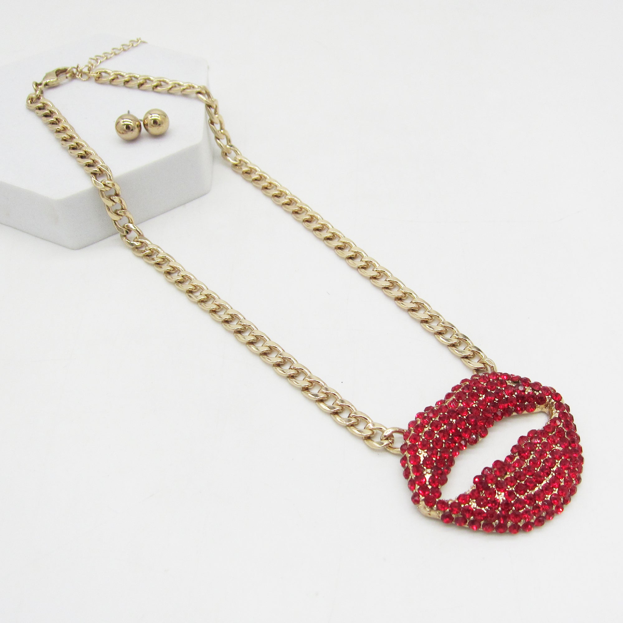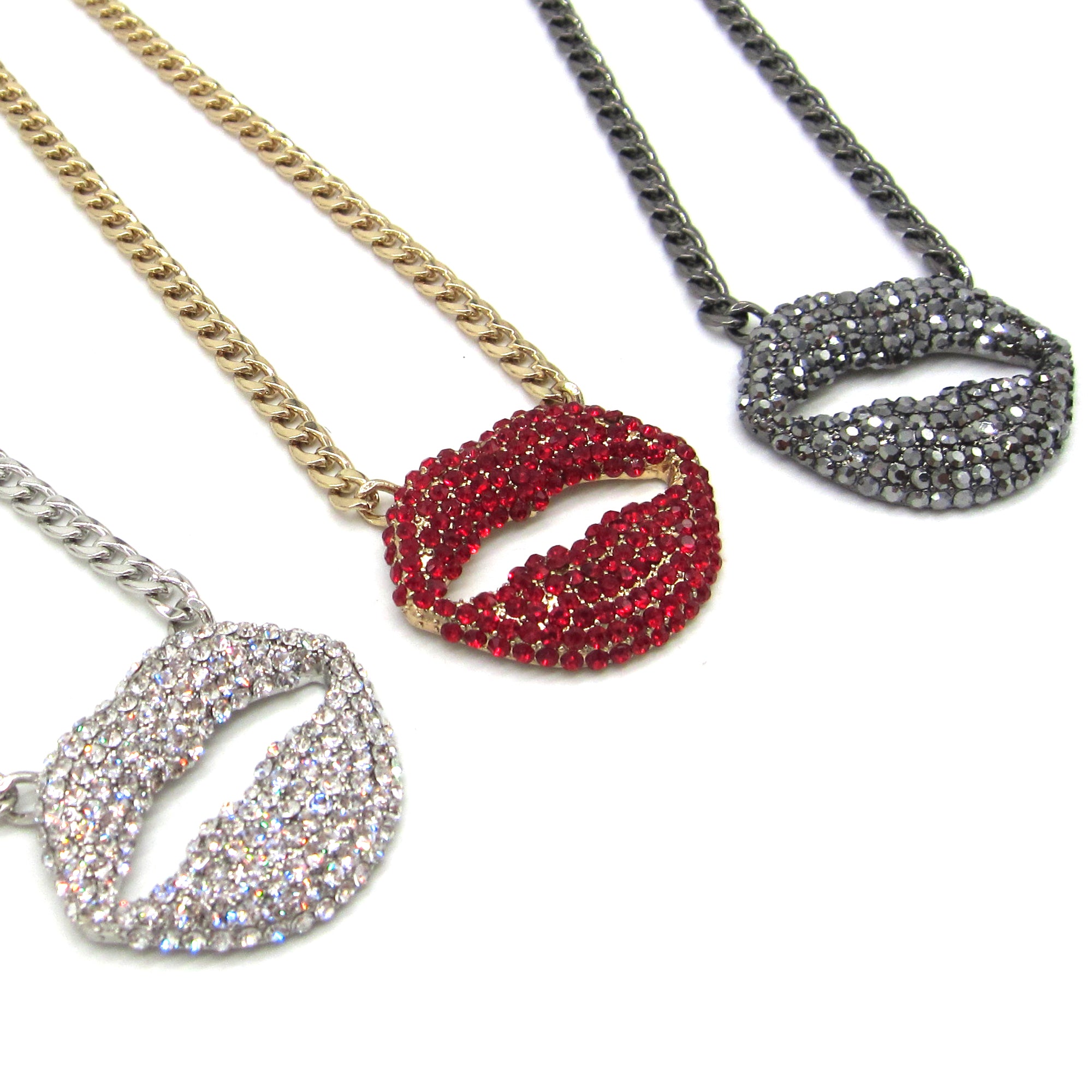 Add a bold sparkle to your look with this Rhinestone Lip Pendant Necklace!